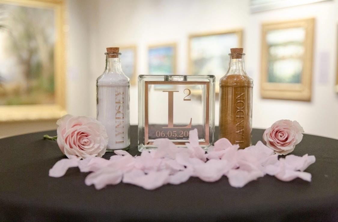- Glass Block: The 6x6" glass block for the sand ceremony sets hold 2 lb. 13 oz. of sand to be completely filled.