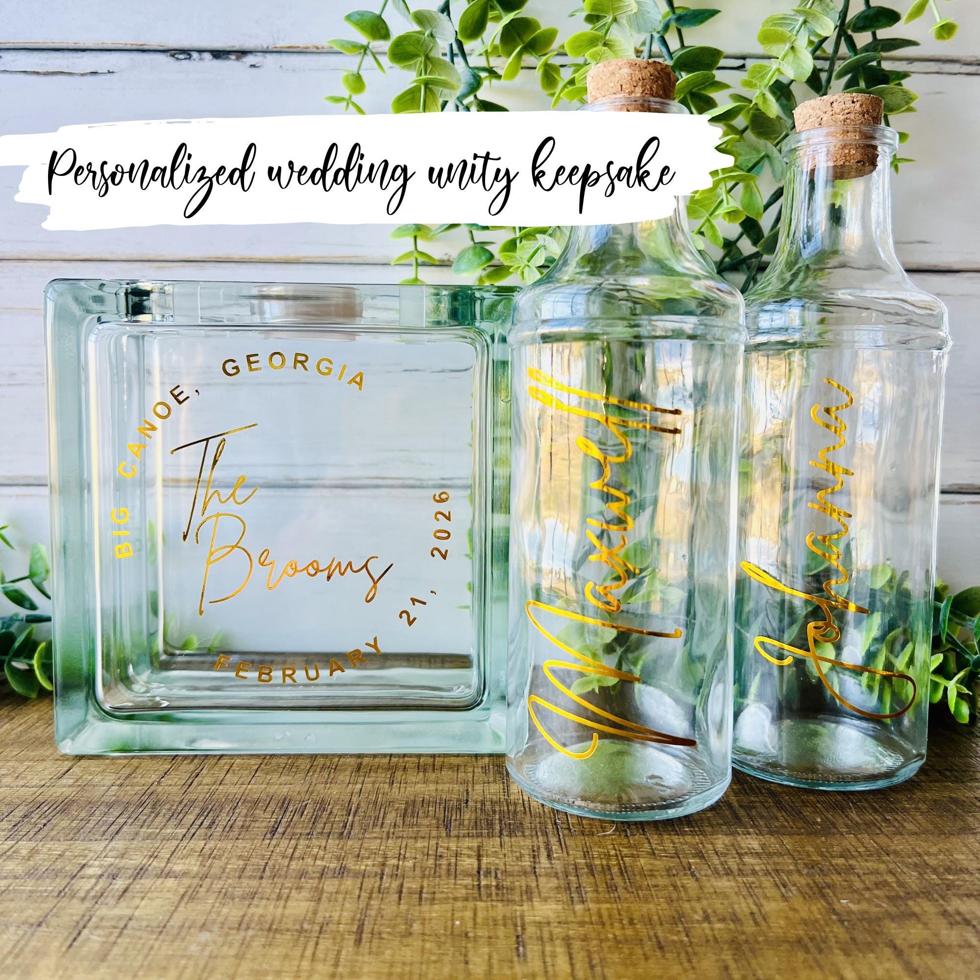 I ordered this glass sand ceremony set last minute and paid for rushed shipping — it arrived right on time! Everything was spelled perfectly, and the glass engraving quality exceeded my expectations. I absolutely love it! Now it’s a beautiful keepsake on display in our home.