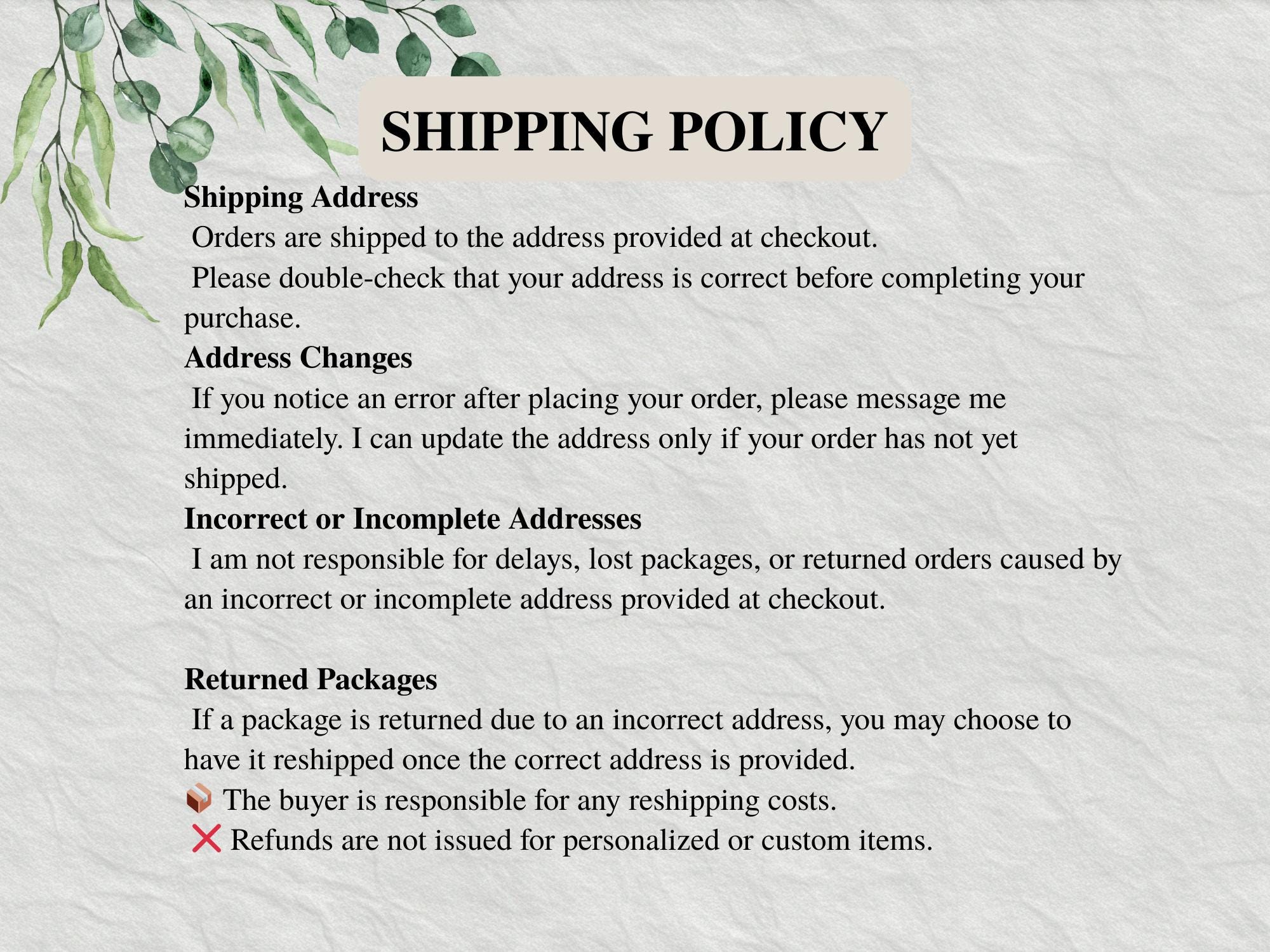Please note that during peak holiday seasons (Mother’s Day & Christmas) shipping can take an additional 1-2 business days. Large orders may require additional time before shipping. Please message me for more information, any questions or concerns about your specific order.