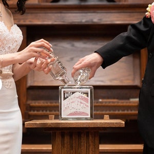 - Glass Block: The 6x6" glass block for the sand ceremony sets hold 2 lb. 13 oz. of sand to be completely filled.