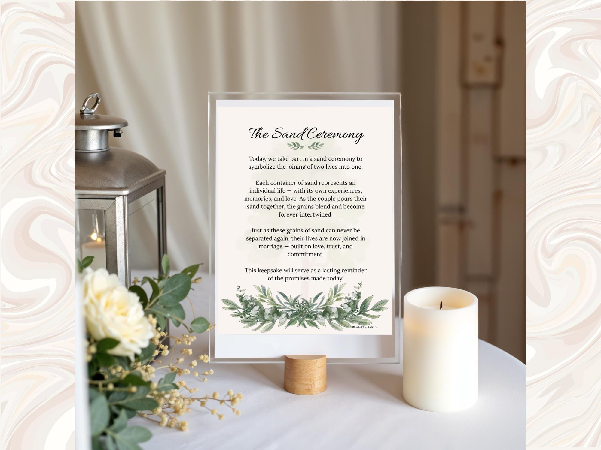 - Glass Block: The 6x6" glass block for the sand ceremony sets hold 2 lb. 13 oz. of sand to be completely filled.