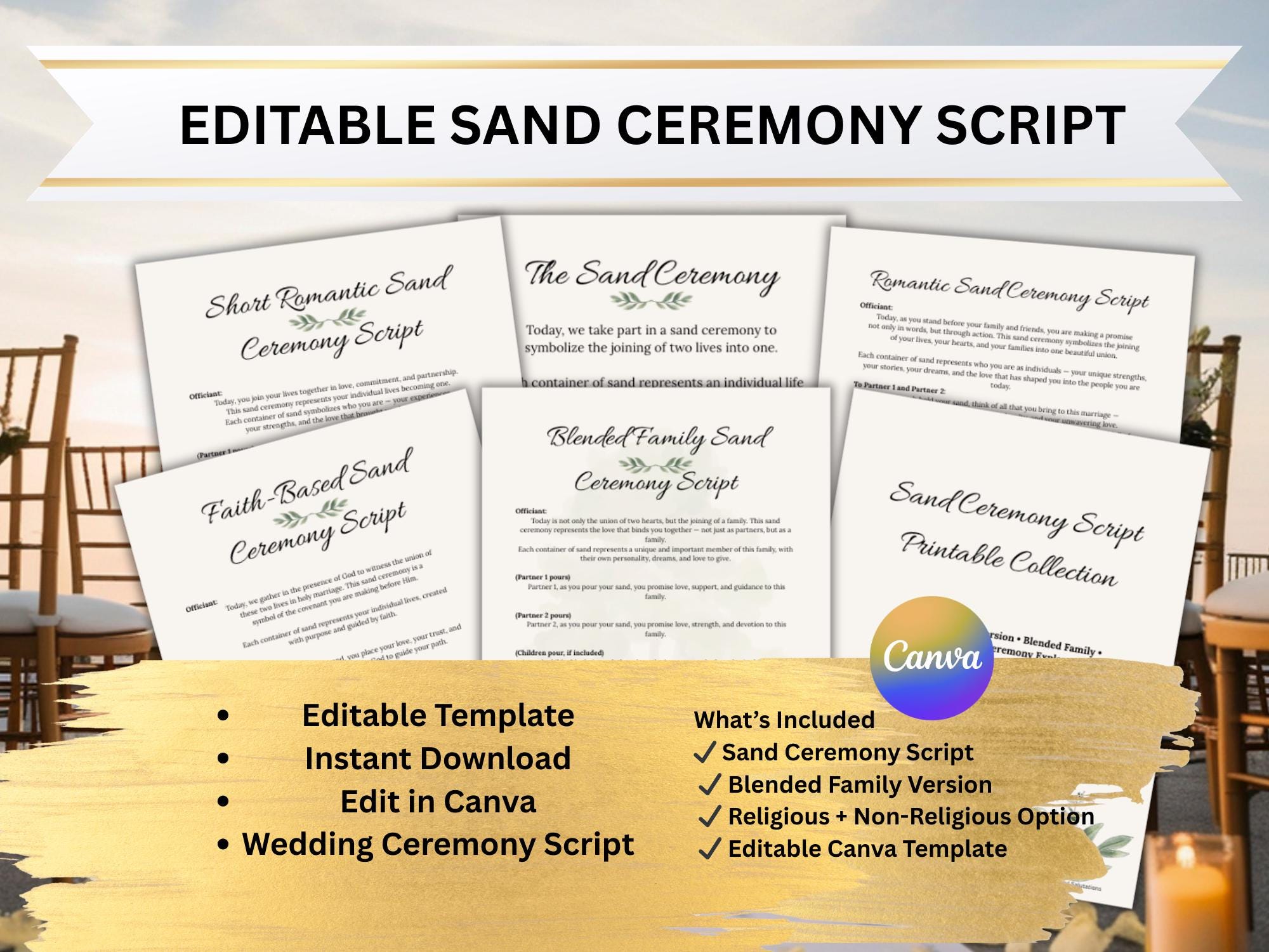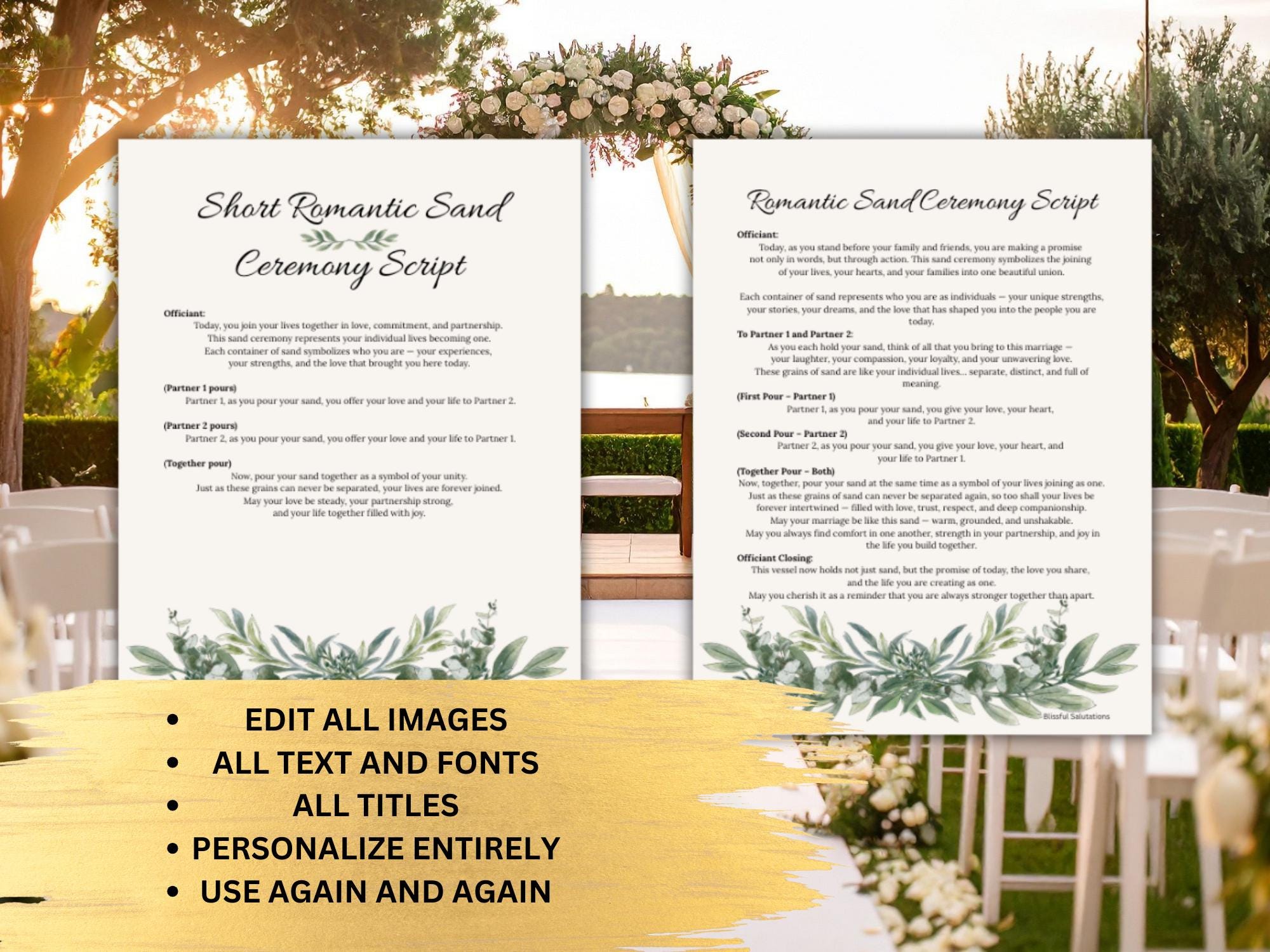 We specialize in meaningful ceremony details designed to make your wedding day even more special. Pair this script bundle with one of our personalized sand ceremony sets for a beautifully coordinated moment ✨
