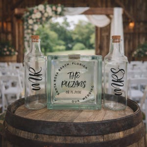 - Glass Block: The 6x6" glass block for the sand ceremony sets hold 2 lb. 13 oz. of sand to be completely filled.