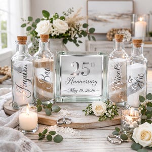 - Glass Block: The 6x6" glass block for the sand ceremony sets hold 2 lb. 13 oz. of sand to be completely filled.